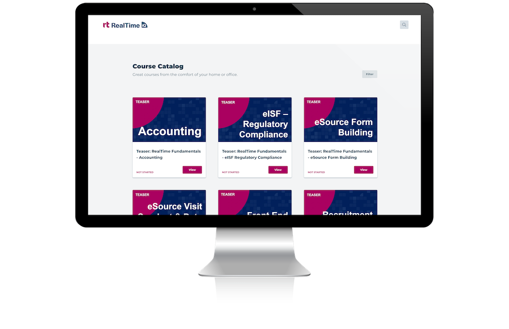 With on-demand interactive modules, knowledge checks, and built-in progress tracking, this expanded eLearning training ecosystem empowers users with more choice, more flexibility, and more ways to succeed with RealTime's powerful suite of eClinical solutions.