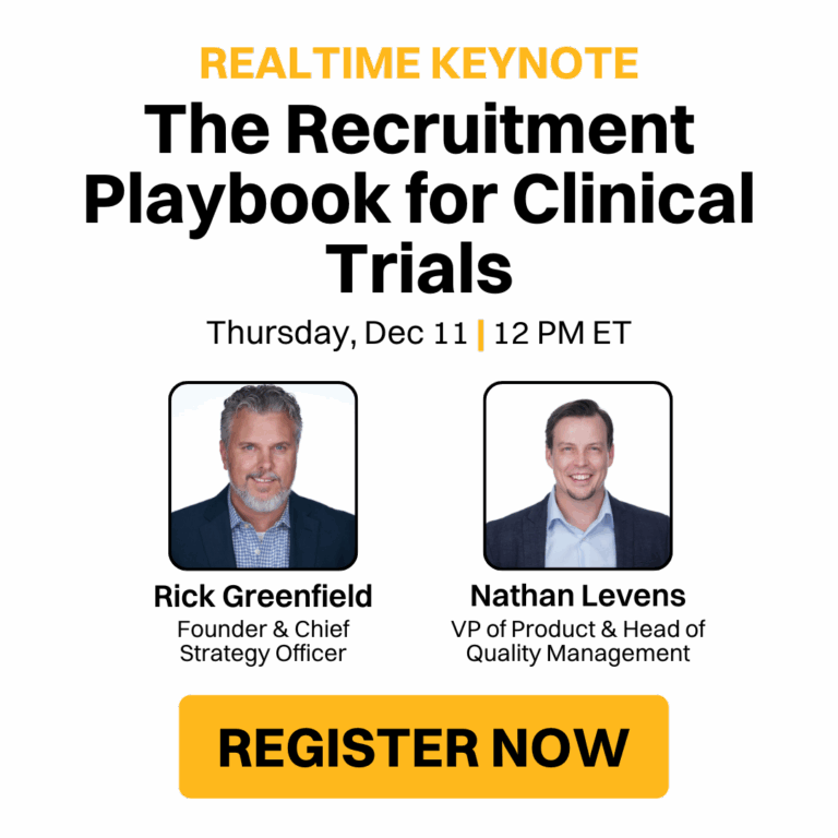 On Wednesday, April 10 at 11:15am, join Nathan Levens, VP of Product Strategy at RealTime, during Breakout Session 1: “Tech-Driven Strategies for Site Excellence” to explore how cutting-edge technology solutions have propelled research centers to success. Gain insights into the practical applications of cost-effective tech tools in daily research operations. Engage in discussions centered around forging collaborative partnership between sponsors and research sites, fostering interoperability, and elevating the clinical trial ecosystem.